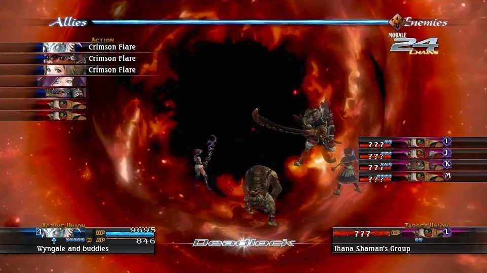 - Union morale now fluctuates based on more conditions (IE: taking an action, successfully landing a hit, receiving damage, etc.). In the X360 version, union morale stayed somewhat static, usually changing when being healed, being KO'd/terminated, executing a successful Critical Trigger. It also did not drop to 0 whenever an offensive Special Art was executed, whereas it will do so on the PC.