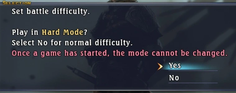 Upon loading Game Completion data, you will also be given the option to start the new game in Hard Mode. In Hard Mode, monster's attacks are much stronger. Hard mode save files display the player's Battle Rank in red, instead of the regular orange color.
